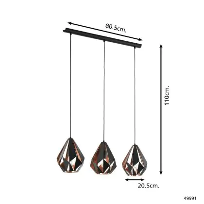 Eglo Pendelarmatuur Carlton 1 Zwart, Koper | Geschikt voor 3x E27