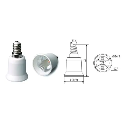 Beschrijving Fitting Adapter voor Lamphouders E14 => E27 Wit
