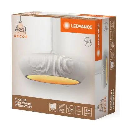 Beschrijving Ledvance Decor Gips/Staal Pure Pendelarmatuur 280 Wit | Geschikt voor E27