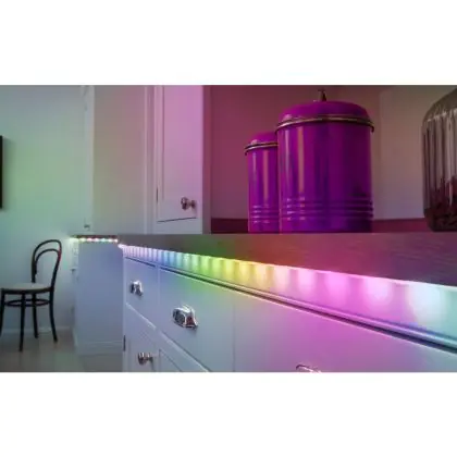 Met deze LED strip kun je iedere ruimte voorzien van het juiste licht. Deze lichtbron kan namelijk ook in hoeken worden geplaatst door het flexibele design van de strip én kan worden ingekort op de aangegeven kniplijnen. Bovendien heb je keuze uit diverse lichtkleuren, die LED strips geschikt maken voor zowel woningen als bedrijven. Hoewel het gebruik van gekleurde LED strips vooral met persoonlijke smaak te maken heeft, worden witte lichttinten specifiek gebruikt voor een bepaald doel. Deze LED strip heeft de lichtkleur 2700K - 6500K Afstembaar Wit. Hier lees je waar welke lichtkleur het best tot zijn recht komt.