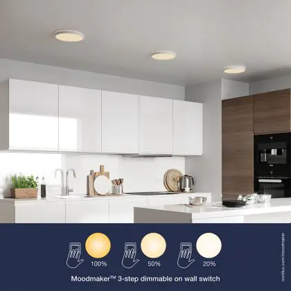 Dat je flexibel kunt zijn met licht, laat deze Oja plafondlamp van Nordlux duidelijk zien. De lamp is voorzien van een 3-staps Moodmaker functie, die je met behulp van je lichtschakelaar kunt instellen. In dit geval heb je 3 lichtstanden: