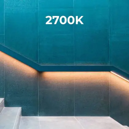 Met deze LED strip kun je iedere ruimte voorzien van het juiste licht. Deze lichtbron kan namelijk ook in hoeken worden geplaatst door het flexibele design van de strip én kan worden ingekort op de aangegeven kniplijnen. Bovendien heb je keuze uit diverse lichtkleuren, die LED strips geschikt maken voor zowel woningen als bedrijven. Hoewel het gebruik van gekleurde LED strips vooral met persoonlijke smaak te maken heeft, worden witte lichttinten specifiek gebruikt voor een bepaald doel. Deze LED strip heeft de lichtkleur 2700K - Zeer Warm Wit. Hier lees je waar welke lichtkleur het best tot zijn recht komt.