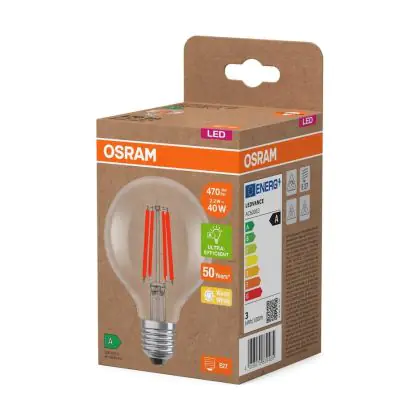 Beschrijving Osram LED Lamps E27 Globe Filament Helder 2.2W 470lm - 827 Zeer Warm Wit | Vervangt 40W