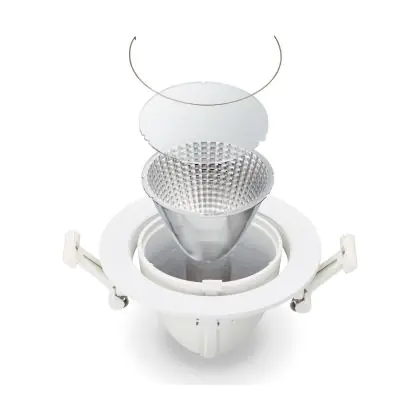 De lichtopbrengst en de gradenbundel spelen een grote rol. Zo geeft de lichtopbrengst van 2900 Lumen in combinatie met de 36° stralingshoek deze inbouwspot een specifieke toepassing. Kort samengevat is een lichtintensiteit van maximaal 400 Lumen ideaal voor accentverlichting, terwijl hogere waardes goed gebruikt kunnen worden als basisverlichting. Over het algemeen geldt: hoe breder de gradenbundel, hoe geschikter deze is door basisverlichting. Dit komt doordat het licht over een groter oppervlak wordt verspreid. Smallere gradenbundels (tot 40°) kunnen echter bij hoge plafonds ook goed tot hun recht komen als algemene verlichting.