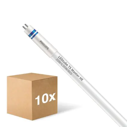 De Voordeelpak 10x Philips LED Buis T5 MASTER (HF) High Efficiency 20W 3000lm - 865 Daglicht | 145cm - Vervangt 35W is het perfecte alternatief voor conventionele TL lampen. Met een verbruik van 20W, bespaar je veel energie vergeleken met conventionele TL lampen die 35W verbruiken. Dit verschil ga je dan ook zeker merken in je maandelijkse energie- en onderhoudskosten!
